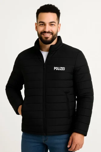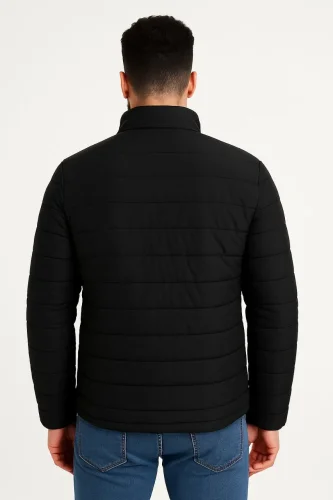 • Erkek Mikro Su İtici Kapitone Baskılı Astarlı Fermuarlı Bomber Mont Siyah
